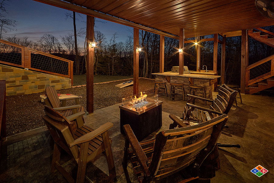 Looking for the ultimate cabin vacation? Mission Accomplished - Barrel Top Lodge checks off all the boxes. Warning - you may never want to leave so book a few extra nights to make sure you can enjoy all the great amenities this cabin has to offer. Play inside in your private indoor heated pool or in the the adjoining game room with multi-cade arcade game, foosball table and custom barrel game table. Play a game of cornhole or washers outside and relax by the outdoor fireplace. Gather with family outdoors around the firepit in your outdoor living area or inside in home theater room with 9 foot screen and tiered theater seating. Fully equipped kitchen to prepare in cabin meals and dining area with plenty of seating.